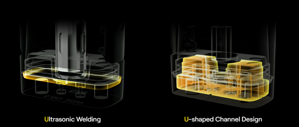 S příchodem nových cartridgí Uwell Caliburn GPP a G Series užívá značka Uwell také zajímavou technologii U2 Anti-Leak při jejich výrobě. Tato technologie spočívá v ultrazvukovém svařování spodní základny, což zajišťuje mnohem lepší těsnivost a eliminuje tak problémy spojené s úniky e-liquidu. Přepracovaný design kanálku pro proudění vzduchu ve tvaru písmene U navíc zajišťuje zlepšený účinek airflow, u cartridgí by tak nemělo docházet k častému kondenzování neodpařeného e-liquidu a výsledná pára by měla lépe cirkulovat uvnitř celé soustavy. Celkově tato technologie zajišťuje až o 150% lepší ochranu proti protékání než u konkurenčních cartridgí.