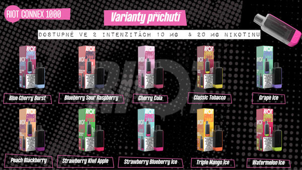 RIOT Connex 1000 posouvá revoluční koncept modulárního vapování na novou úroveň. Na první pohled připomíná jednorázovou e-cigaretu, ale ve skutečnosti je mnohem dál – více potahů, delší výdrž a naprosto bezstarostný provoz pro každý den. Stále jde o lehké, kompaktní zařízení složené z dobíjecí baterie a předplněné kapsle, které spolu drží pohromadě s jistotou díky silným magnetickým úchytům. A protože RIOT myslí na všechny uživatele, zachovává platforma Connex plnou zpětnou kompatibilitu. Samozřejmostí je automatické žhavení i praktická manuální pojistka pro uzamčení zařízení.